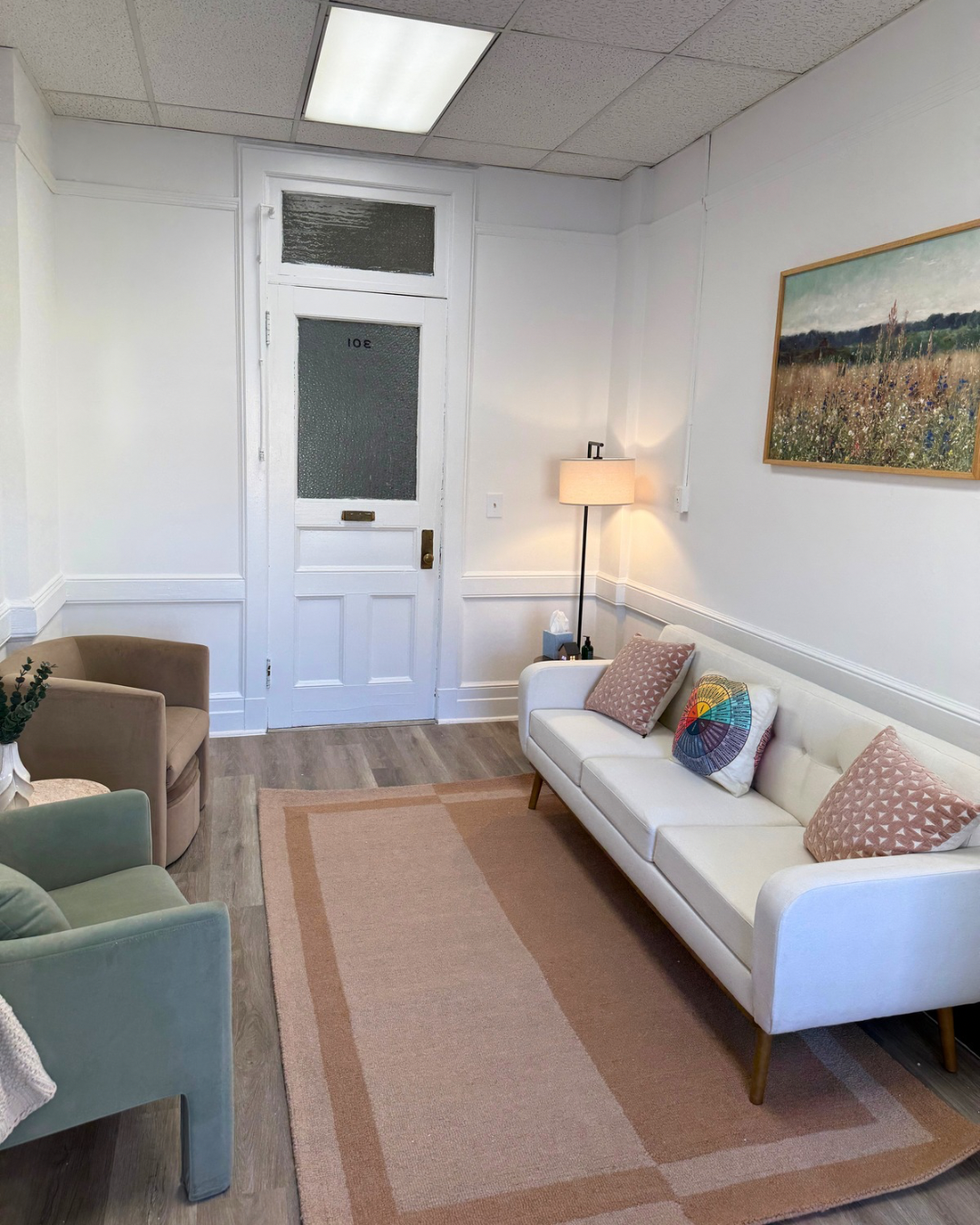 This is a beautiful, newly furnished office, new floors, new paint in a lovely building in downtown Hoboken next to great coffee and river pier walks. Wifi, coffee/tea station in suite, storage cubby available, waiting room and elevator building. Can comfortably fit 1-4 clients. Office is available all-day Mondays, Saturdays and Sundays. Possible Fridays if needed. Please contact me for more pictures and information.