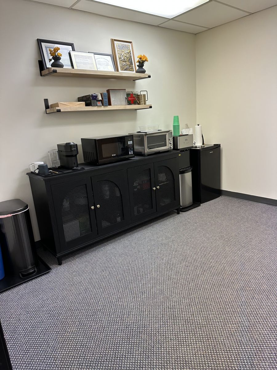 Newly purchased and renovated office condo located in the Fairfield Commons off route 46 West. Newly renovated private bathroom in the suite, new paint, carpets steam cleaned, with natural lighting, a small waiting area, and a multi-purpose break room. The office has everything needed: microwave, toaster oven, water cooler, refrigerator, along with office supplies. All utilities are included in the rent, which is $650/month for full-time (internet, electric, heating and cooling). Parking is plentiful throughout the complex. I am a trauma therapist who only sees adults, and would prefer someone who sees similar clients if possible. Willing to rent to other professionals with similar work, such as dietitians, massage therapists, reiki or other holistic practitioner that would be a nice adjunct to the work I do. I may also consider renting to more than one person to split up the use of the space. (The space for rent is 170 sq ft, the entire suite is 930 sq ft.)