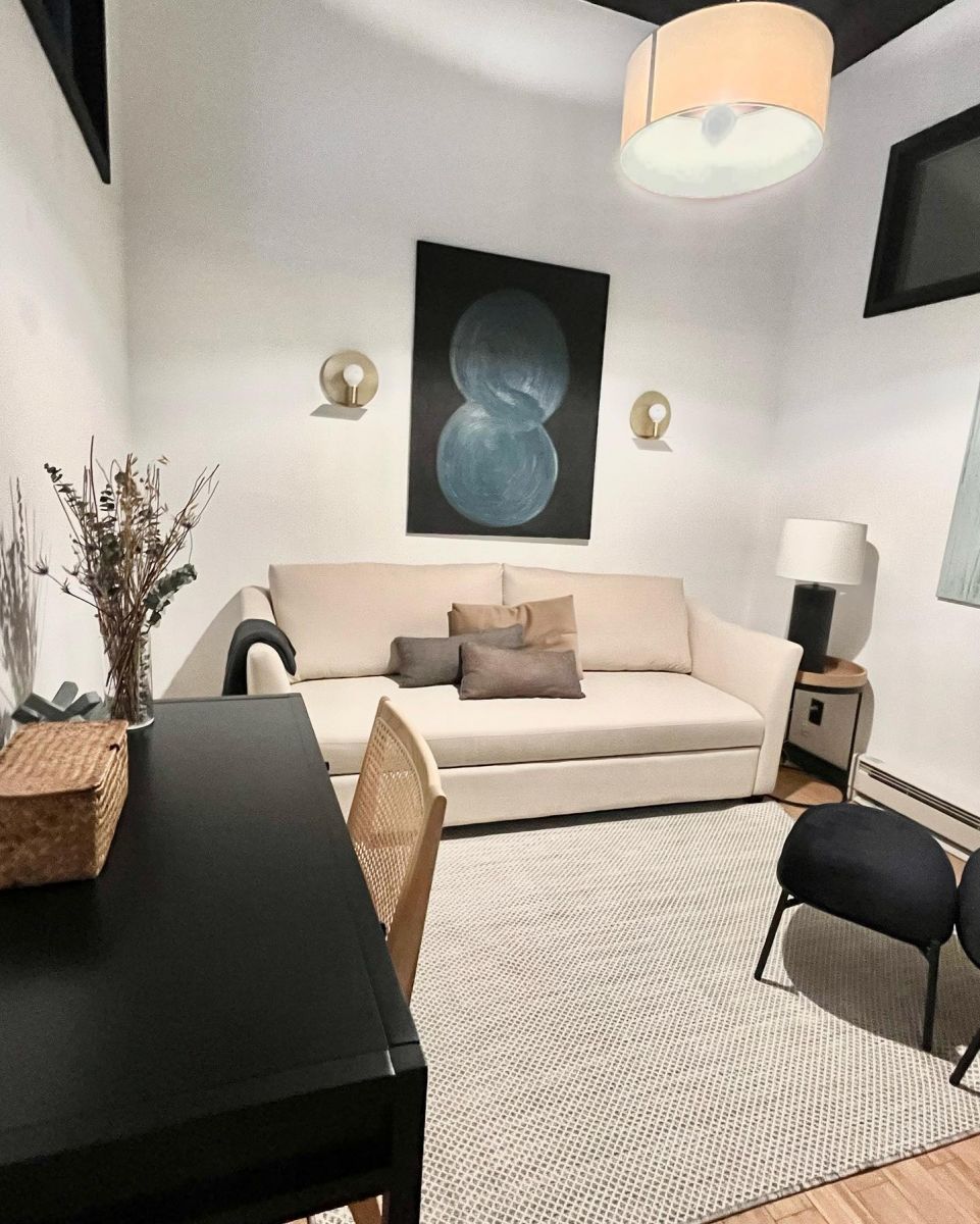 Blue Panda Office Spaces has a full-time office available at 231 Norman Ave. This commercial condo is located next door to the Henry Norman Hotel and one block away from McGolrick Park. The office is beautifully and comfortably furnished, and you’ll share the suite with great suitemates who value respect and professionalism. It’s perfect for seeing adult individuals and couples, whether virtually or in person. The suite is small but quite nice and includes three offices focused on mental health. The available office is ideal for psychotherapists, social workers, wellness professionals, or anyone seeking a space that is both professional and welcoming. This affordable office is available now. Suite features include a 10-foot bench that comfortably accommodates clients while they wait, a fully ADA-compliant bathroom, an intercom system, and commercial-grade high-speed WiFi. If you need space sooner or are interested in additional options, Blue Panda Office Spaces also offers other suites in the Williamsburg area—please reach out for more information. Office rate: Full-time – $1,200