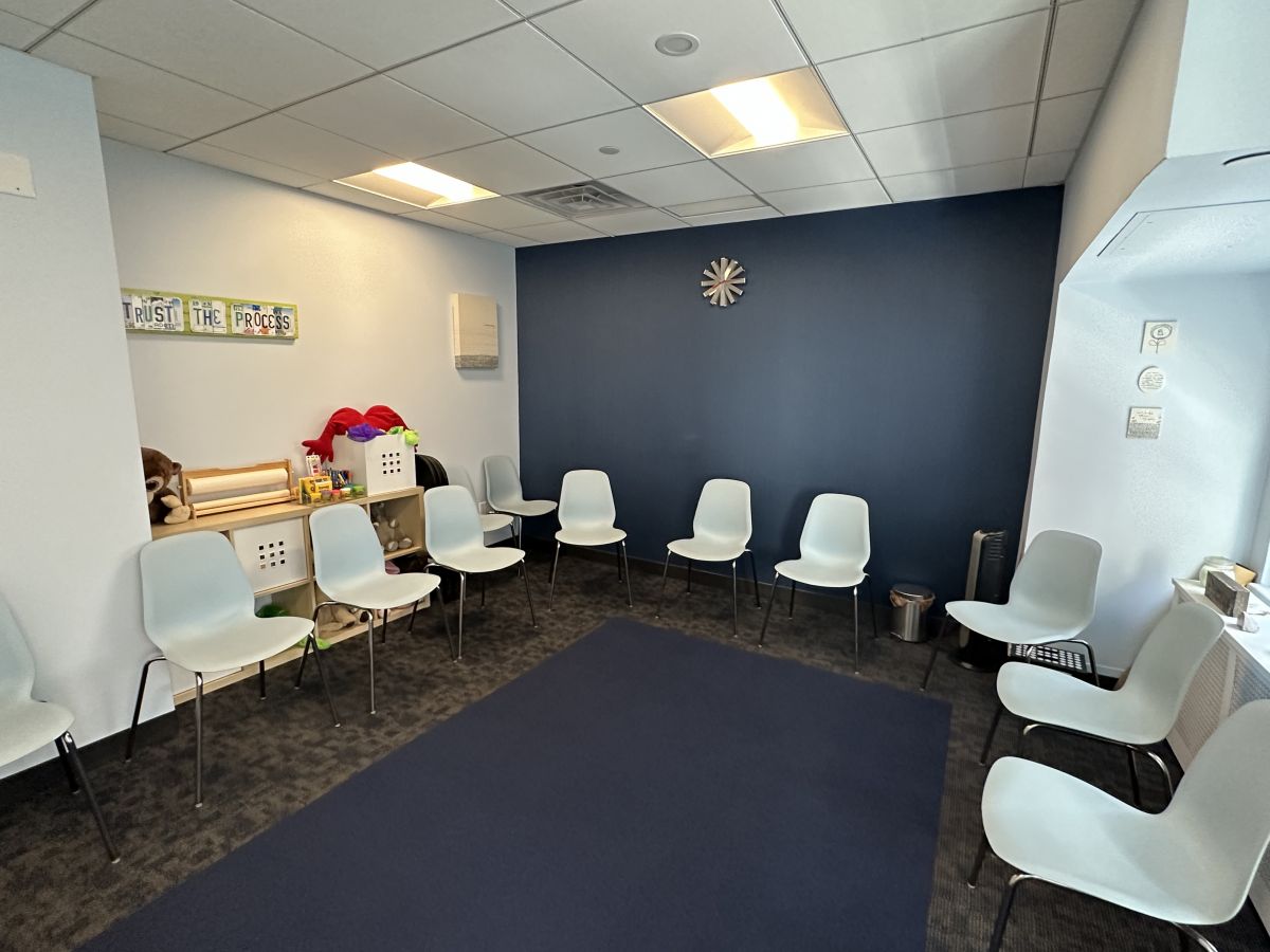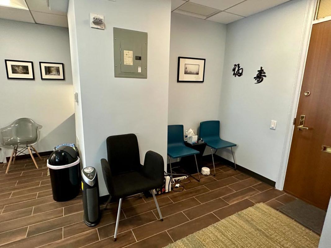 The suite has a coffee bar plus a sink, refrigerator and microwave. Sound machines, cleaning service, and wifi are included. Each office, plus the waiting room, has an air purifier.
