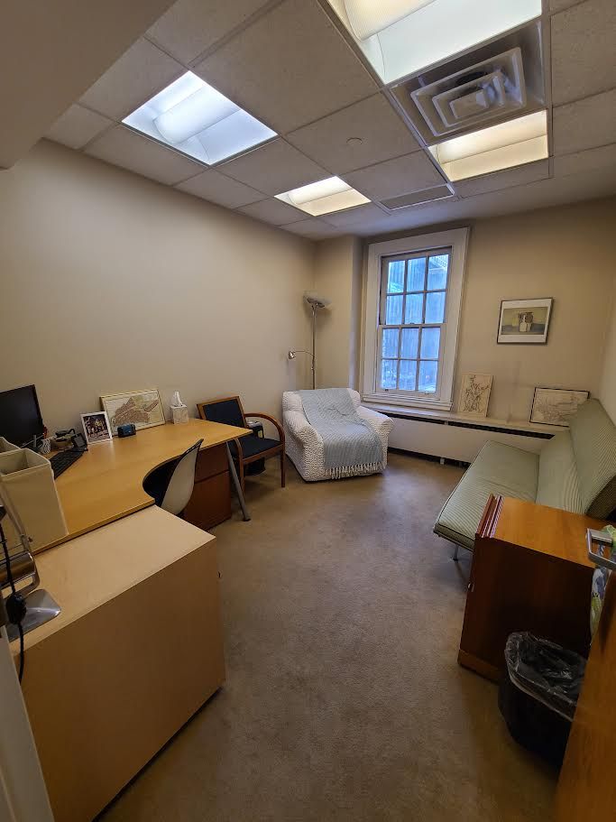 Available December 1, 2025. Sunny, 12.5’ x 9’ furnished or unfurnished windowed office to sublet in a suite shared with two psychologists in a highly desirable building with an attended lobby located at W57th Street and 7th Avenue, near to multiple subway lines and bus stops. We have low foot traffic in the suite. Office amenities include high quality sound proofed walls and doors, in suite bathroom, kitchenette, large waiting room, central AC and heat, and internet, and the office is wired for a private phone line. The office can be shared upon the approval of the lease holder.