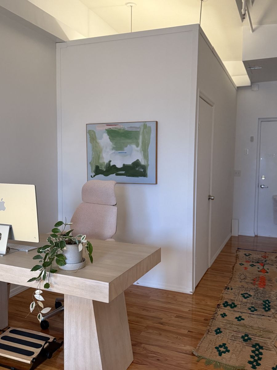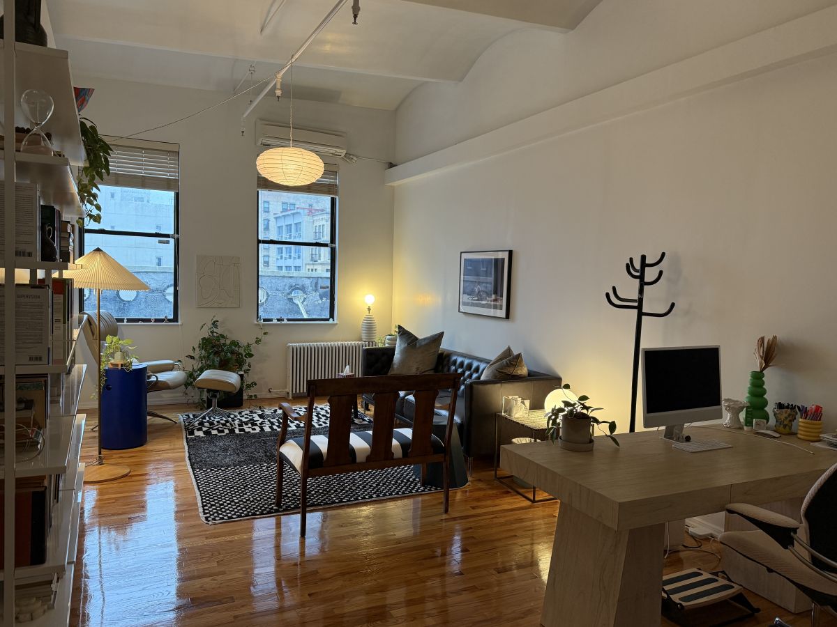 My spacious and sun-bathed office is available for rent Wednesdays, Thursdays and weekends. The office is 500 square feet with 12 foot arched ceilings, two large windows with skyline/Brooklyn Bridge view, ductless A/C, high speed internet, and separate storage space with fridge and water cooler. The loft-like space can comfortably sit about 8 people, making it ideal for groups. The office is well-appointed with designer furniture, healthy plants and artwork. It is situated on the top floor of a historic building. The Fulton St. subway station (A, C, J, Z, 2, 3, 4, 5) abuts the building entrance. Currently available for rent Wednesdays, Thursdays and weekends. Partial days and short-term sublets will be considered. Rates fall between $350-$600 per day depending on day(s). Please reach out for more information.