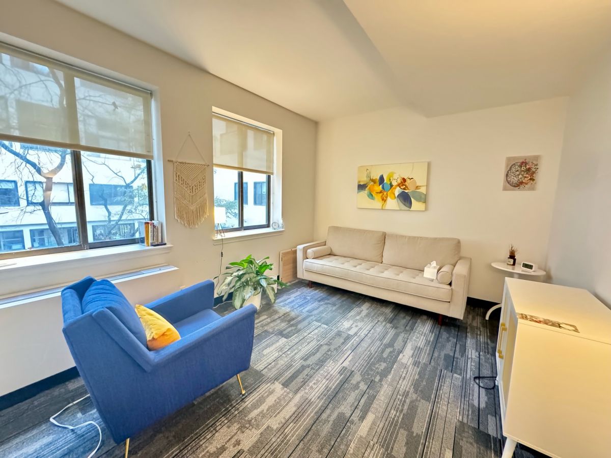 Psychotherapy offices available in a well-maintained NoHo suite, steps from Soho, Union Square, and Greenwich Village. Option A: full-time sunny windowed office overlooking a quiet courtyard (furnished or unfurnished) . Option B: part-time two-window office available Friday–Monday. Doorman building with 24/7 access, elevators, private bathroom, shared waiting area, and all utilities included. Warm, professional space—ideal for psychotherapists or other mental health professionals. For a tour, email 77bleeckerny@gmail.com