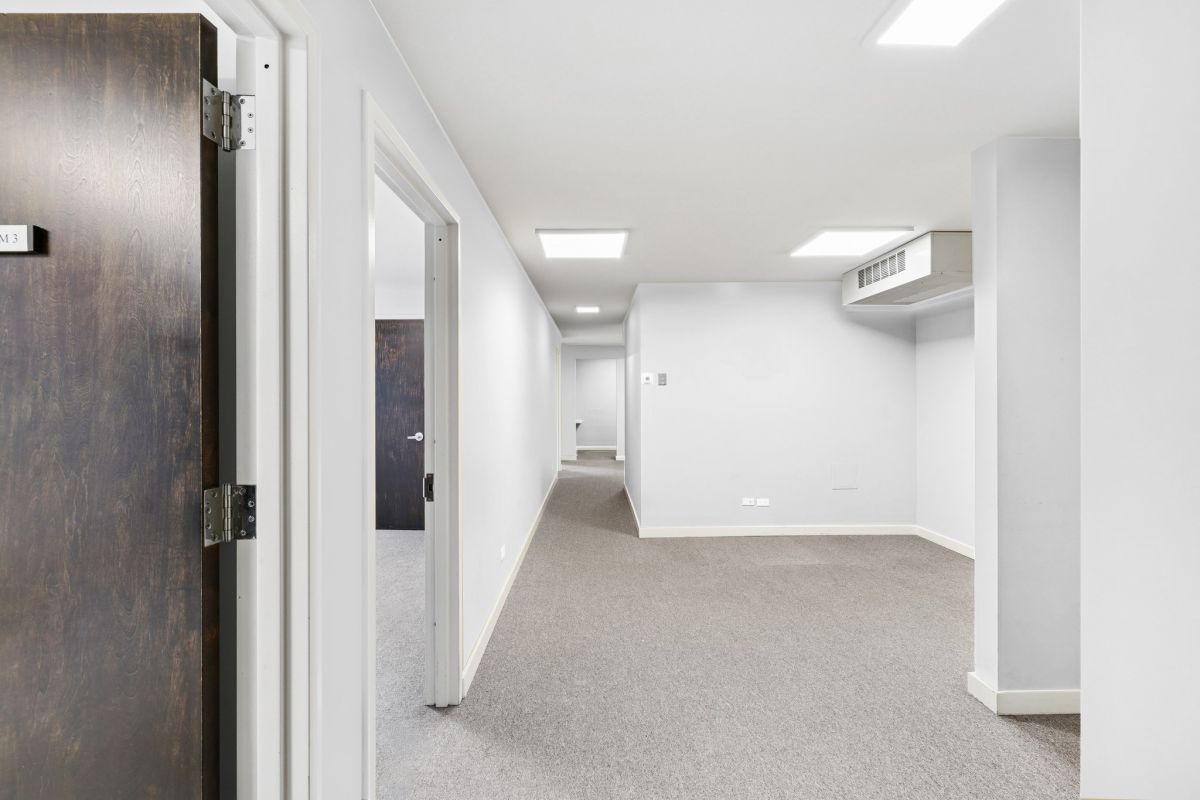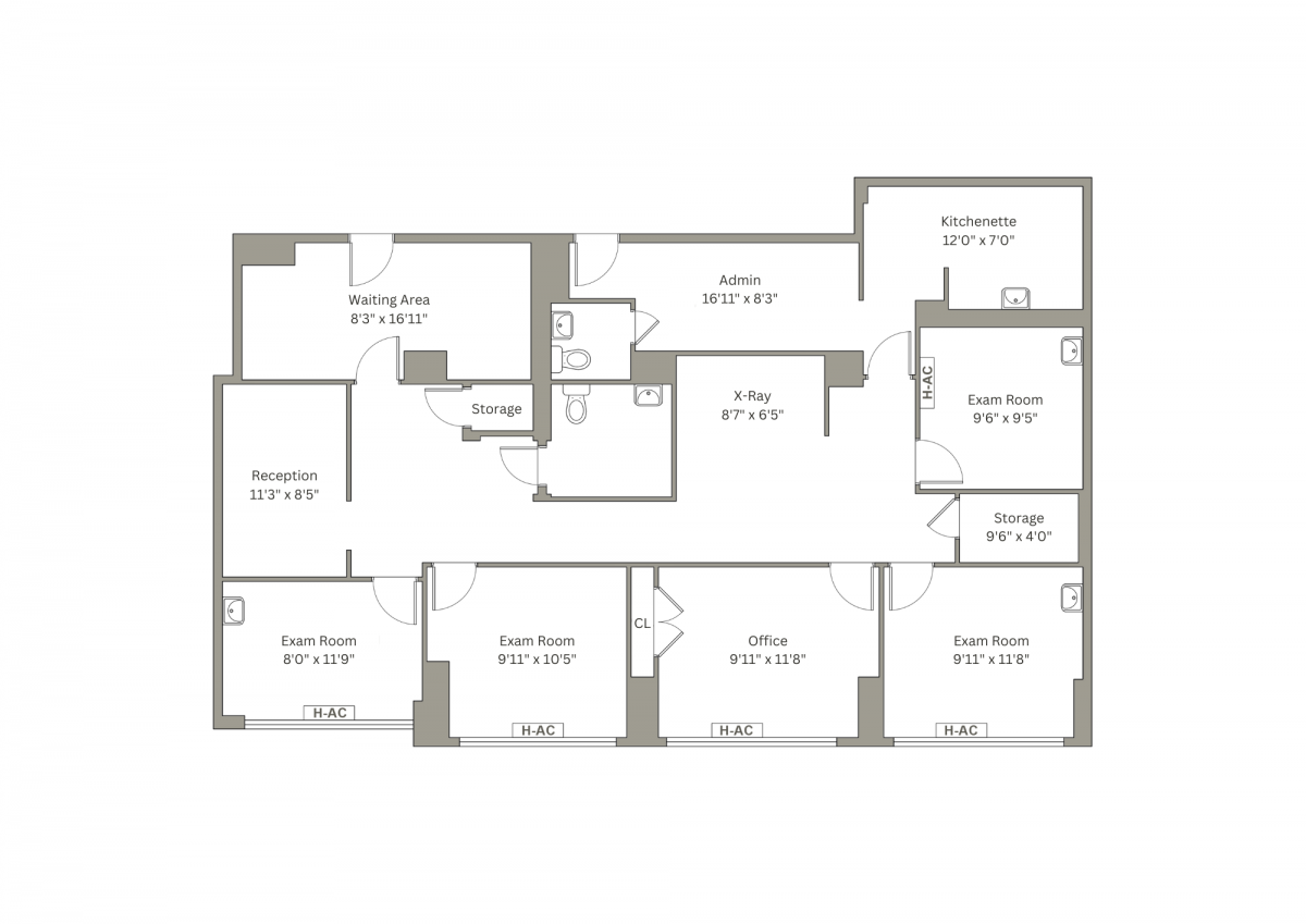 Thoughtfully designed medical suite featuring four exam rooms, a consultation office, and dedicated x-ray room. The layout includes a private waiting area, reception, kitchenette/break room, storage, and administrative space, making it ideal for medical or dental practices. With efficient flow and built-in functionality, this space is well-suited to deliver quality care in a professional setting.
