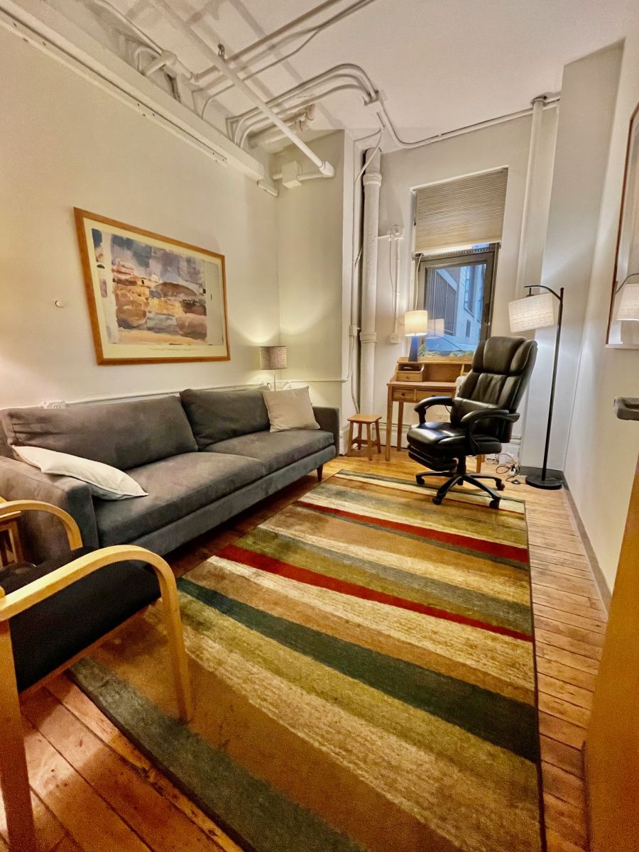 Windowed office available Thursdays, Fridays, Saturdays, and Sundays. Beautiful Hardwood Floors, One Large Window. Two Waiting Rooms, Free High Speed Wifi, Mail, Therapist Only Pantry. Great Neighborhood. E 16th St Between Union Sq & 5th Ave. Close to All Trains (4,5,6, N, Q, R, L, F, A, C, & Path).