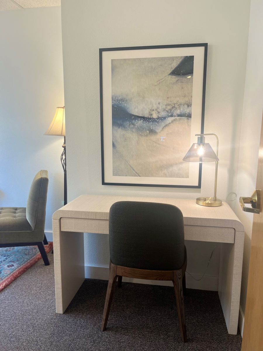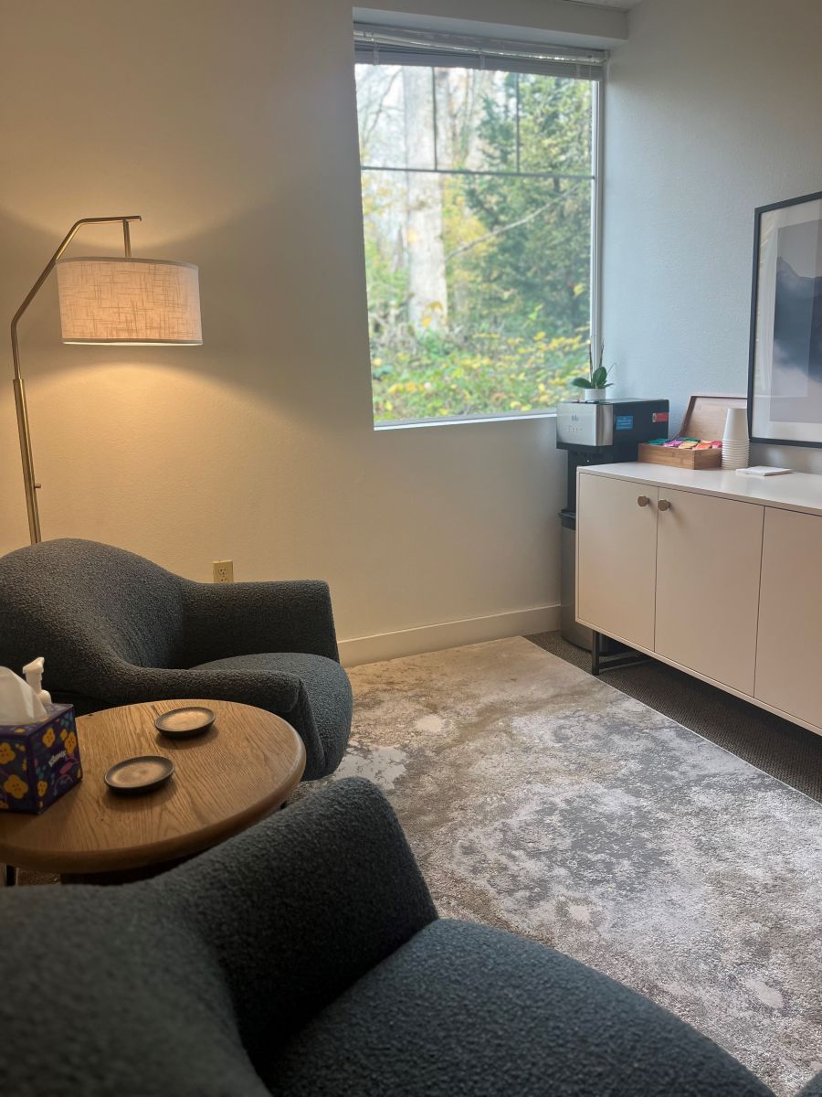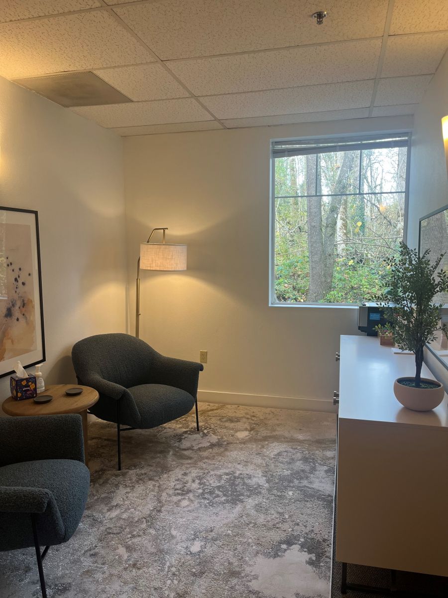 I have a quiet office suite available for a psychotherapist looking to hold client/patient sessions in the beautiful Lake Oswego area. The office is conveniently located right off the I-5 freeway on Kruse Avenue, in a well-established professional center within a welcoming residential neighborhood. There is ample free parking available. The suite features two offices and a small waiting area. I currently occupy one office and am seeking another professional to rent the second office for day and evening sessions. The suite is rented on Mondays, leaving availability for the other six days of the week (Tuesday to Sunday). The office is 122 sq ft, and the shared entry vestibule and waiting room is 162 sq ft. The monthly rent is $265 for one day a week, which includes Wi-Fi and tea and water for you and your clients. If you're interested in using the space more frequently, I offer discounts for additional days. I am happy to answer any questions and provide more pictures of the office.