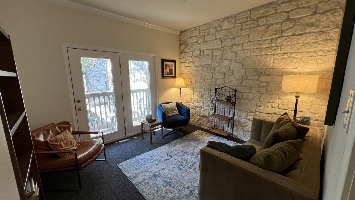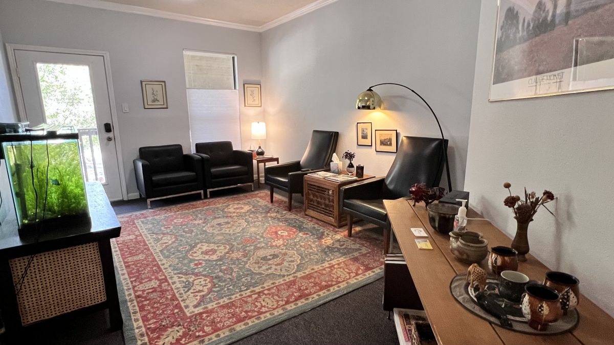 The space is 12' x 11' 132 sf. It has a beautiful balcony with a table and chairs overlooking a wooded area. There are two offices in our suite. The other is shared by two therapists. Renters may provide their own furnishings and decorations as they desire. Includes: electric, Internet, office supplies, printer, noise generators, kitchen, bathroom, and weekly cleaning. Waiting area is comfortable with a fish tank. It is currently available for 6 days a week for $1100. Also available hourly and on specific days a month at a prorated rate. Please call or email Theo to inquire and see the space.